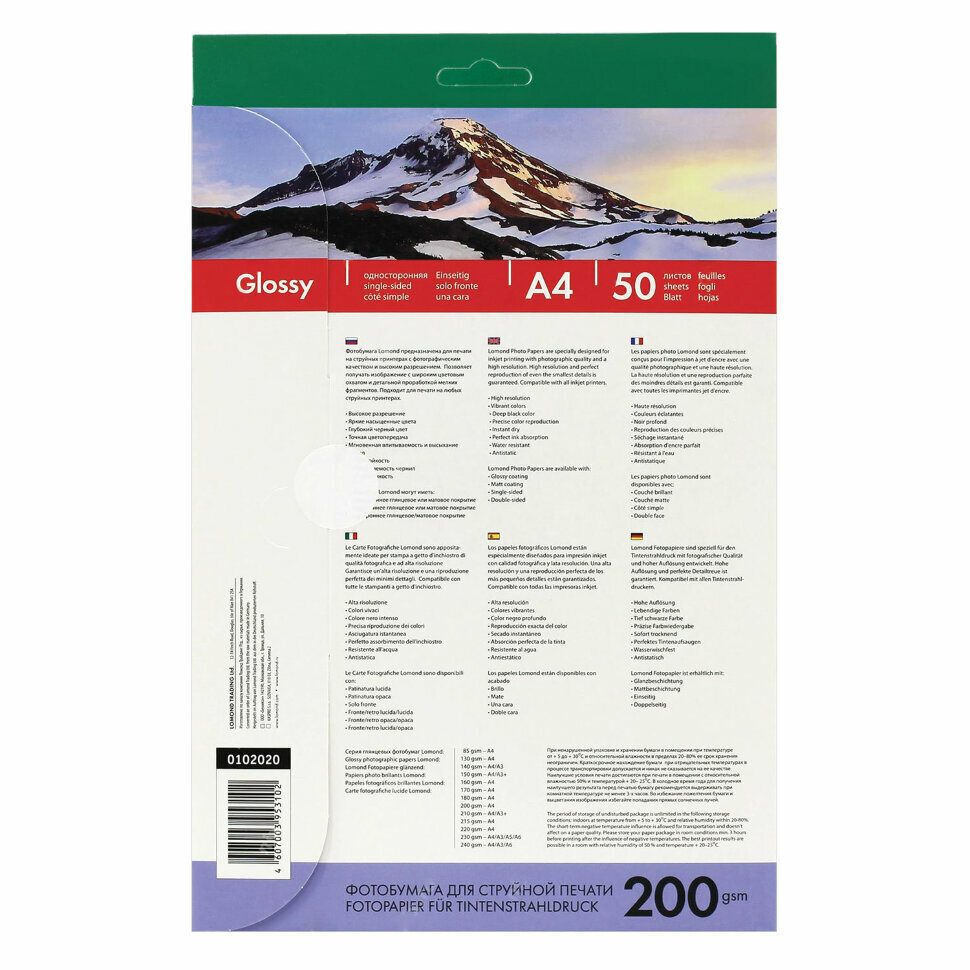 0102020 бумага LOMOND (A4, 200гр, 50л) Photo Глянцевая, 1стор.