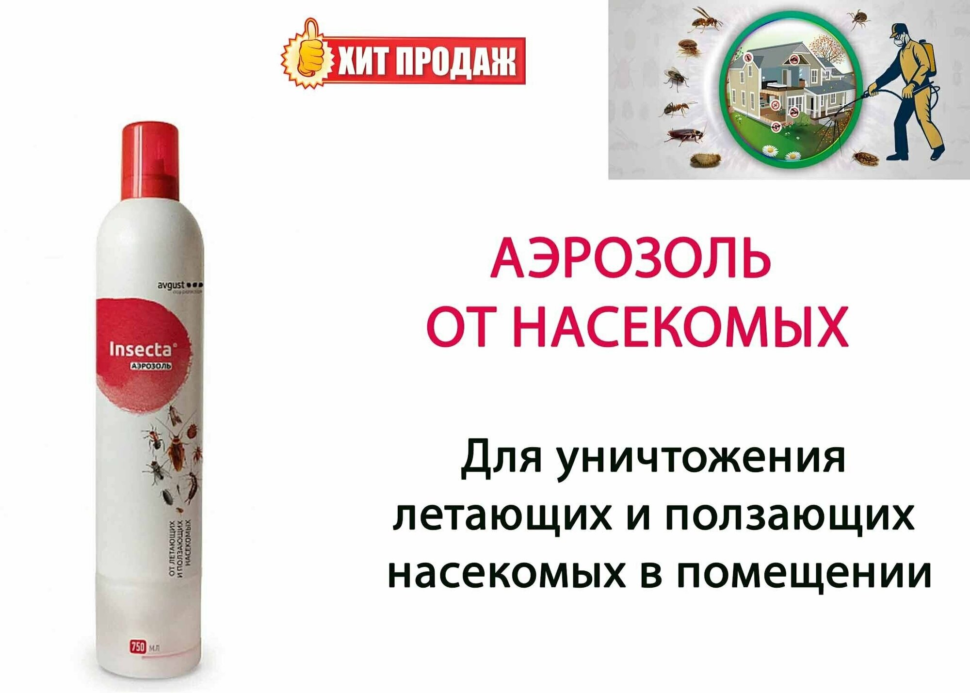 Аэрозоль avgust Insecta, 750 мл для уничтожение насекомых