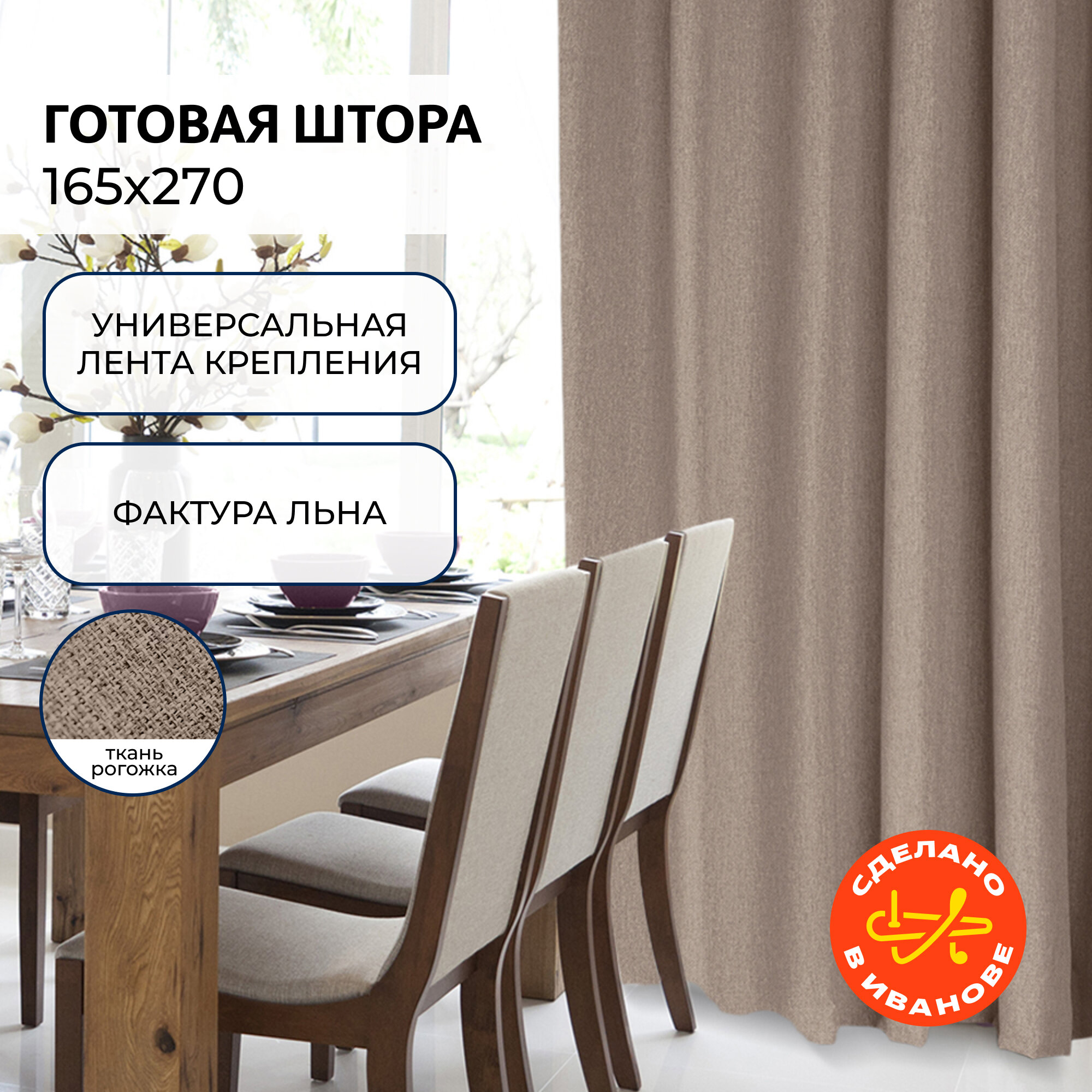 комплект штор на шт.ленте волшебная ночь рогожка 165Х270см 2шт шоколад, арт.721881