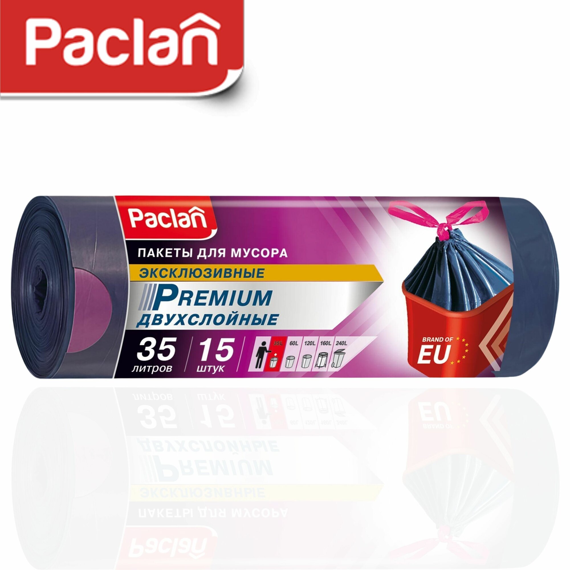 Paclan Мешки для мусора с тесьмой PREMIUM 35л 15шт. (ПВД)