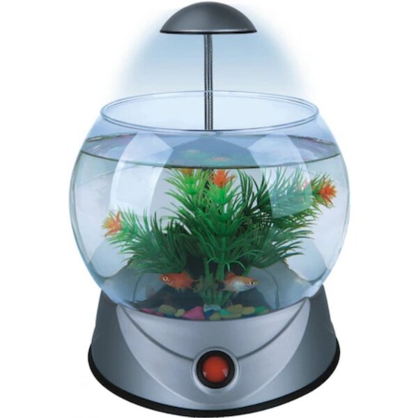 Круглый аквариум для рыбок с LED-подсветкой и грунтом, 2,5 л серебро