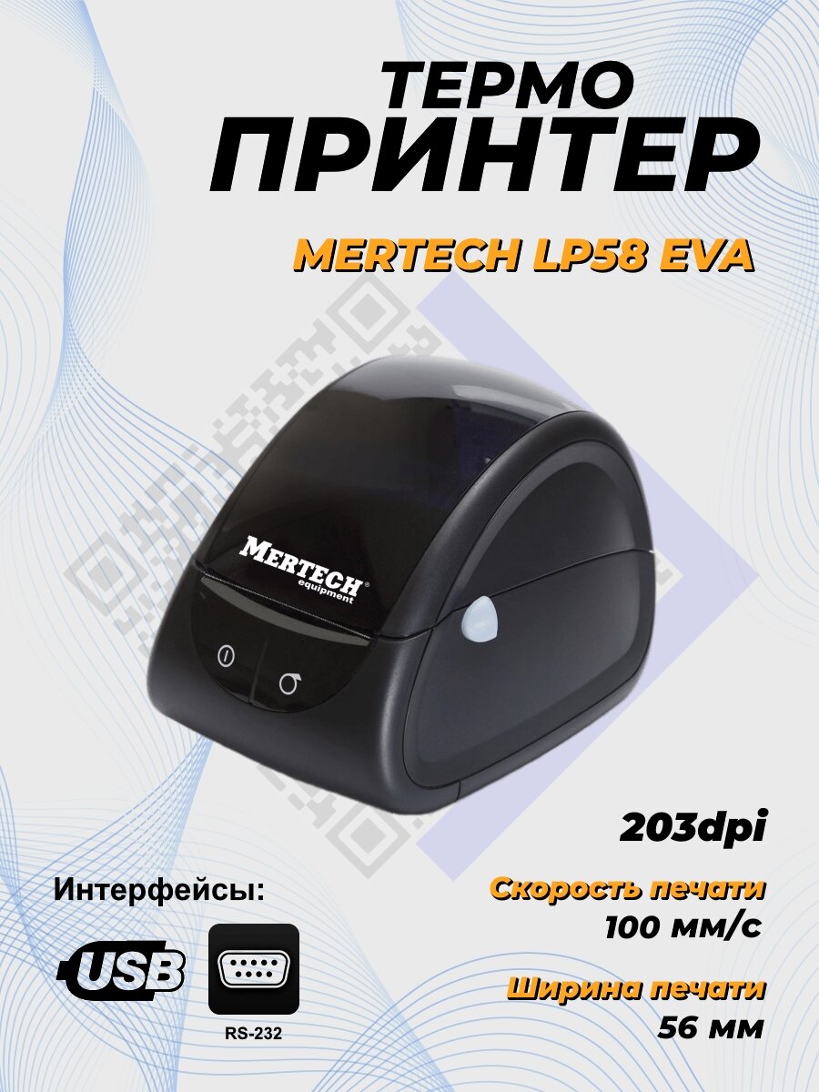 Термальный принтер этикеток блок питания Mertech LP58 EVA RS232-USB черный