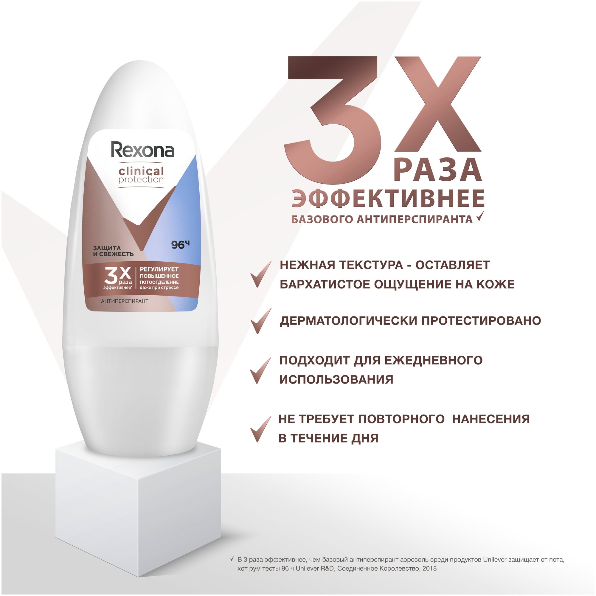 Дезодорант роликовый женский Rexona Clinical Protection Защита и свежесть, 50мл
