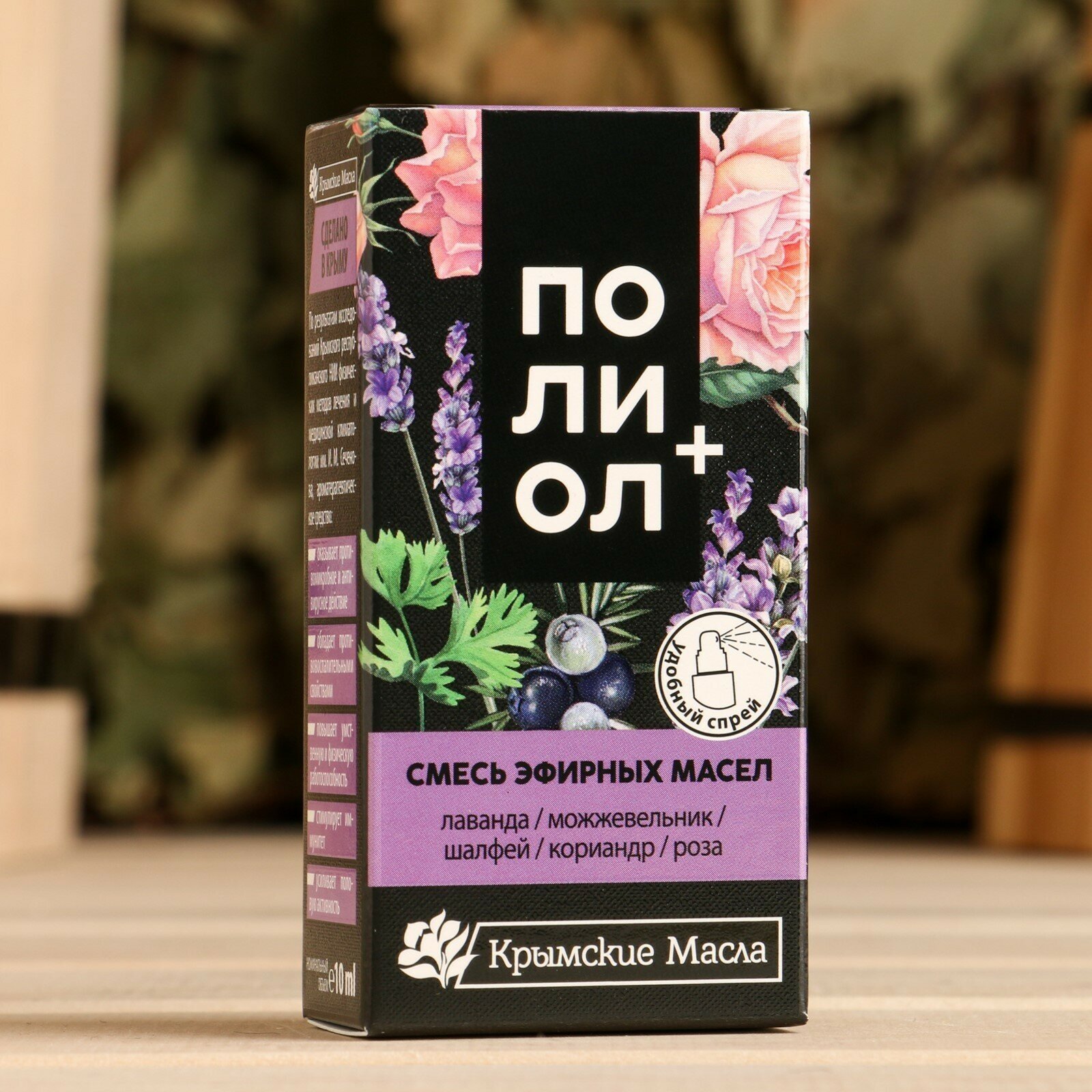 Купить Крымские Масла, "Полиол плюс" - смесь эфирных масел лаванды, шалфея, можжевельника, кориандра, розы; 10 мл спрей