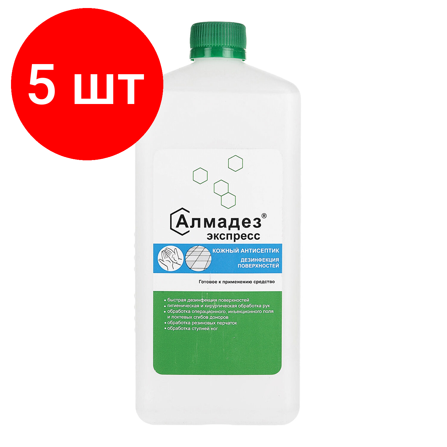 Антисептик для рук и поверхностей спиртосодержащий (63%) 1л алмадез-экспресс, комплект 5 шт., дезинфицирующий, жидкость, АЭ-503