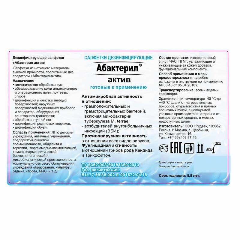 5 шт. Салфетки Абактерил-актив №60 (13,6*17) влажные дезинфицирующие