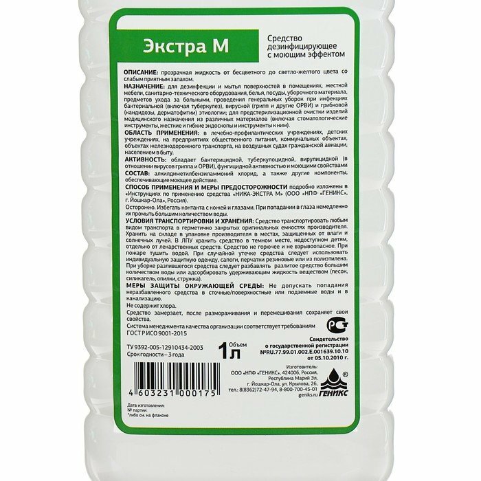 Дезинфицирующее средство Ника "Экстра М", 1л Геникс
