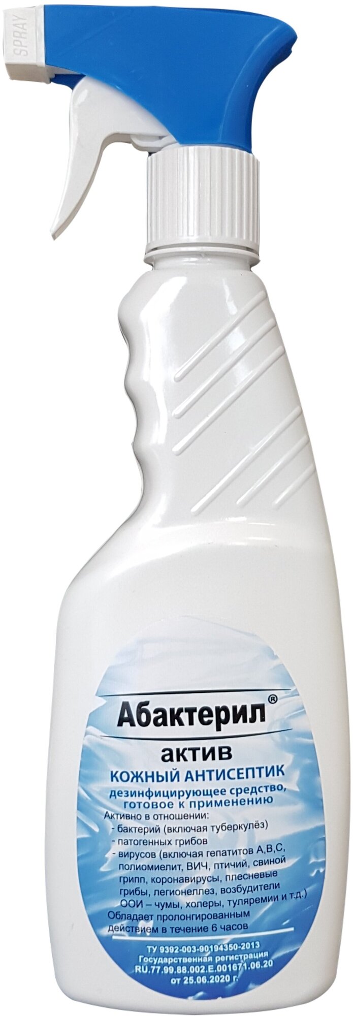 1 шт. Кожный антисептик с вирулицидной активностью ГОСТ 12.1.007-76 Абактерил-Актив 500 мл спрей