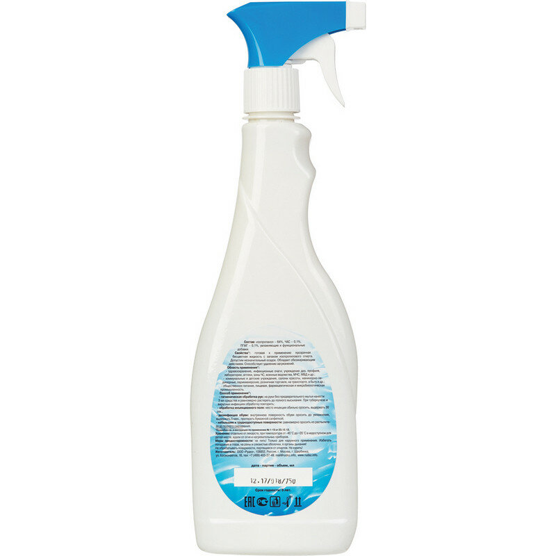 Антисептик для рук и поверхностей спиртосодержащий (64%) с распылителем 750мл абактерил-актив, дезинфицирующий, жидкость, АА-215 Комплект : 1 шт .