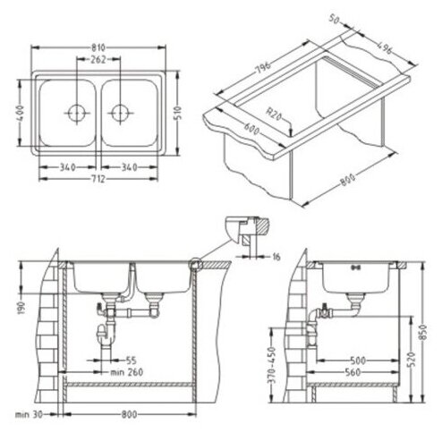 Кухонная мойка ALVEUS ELEGANT 40 LEI-90 810X510 2X нерж.сталь (1009385) интересное: