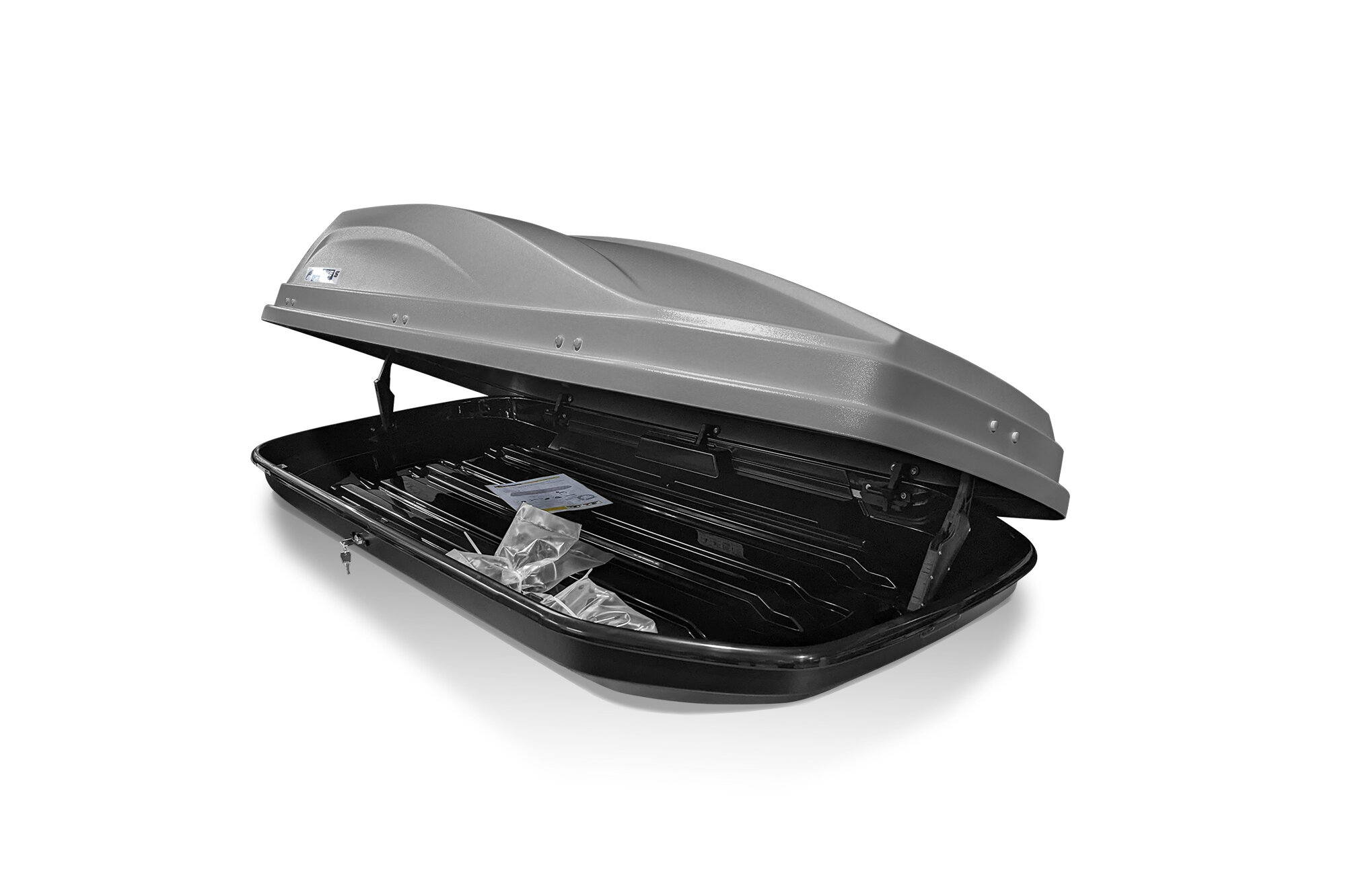 Купить Бокс-багажник (Автобокс) на крышу Аэродинамический "Turino Active-S-DUO" 320 л двухсторонний, серый матовый.
