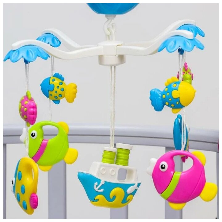Мобиль электронный "Морские истории": 2 режима, музыка, 5 съемных игрушек Жирафики 642645