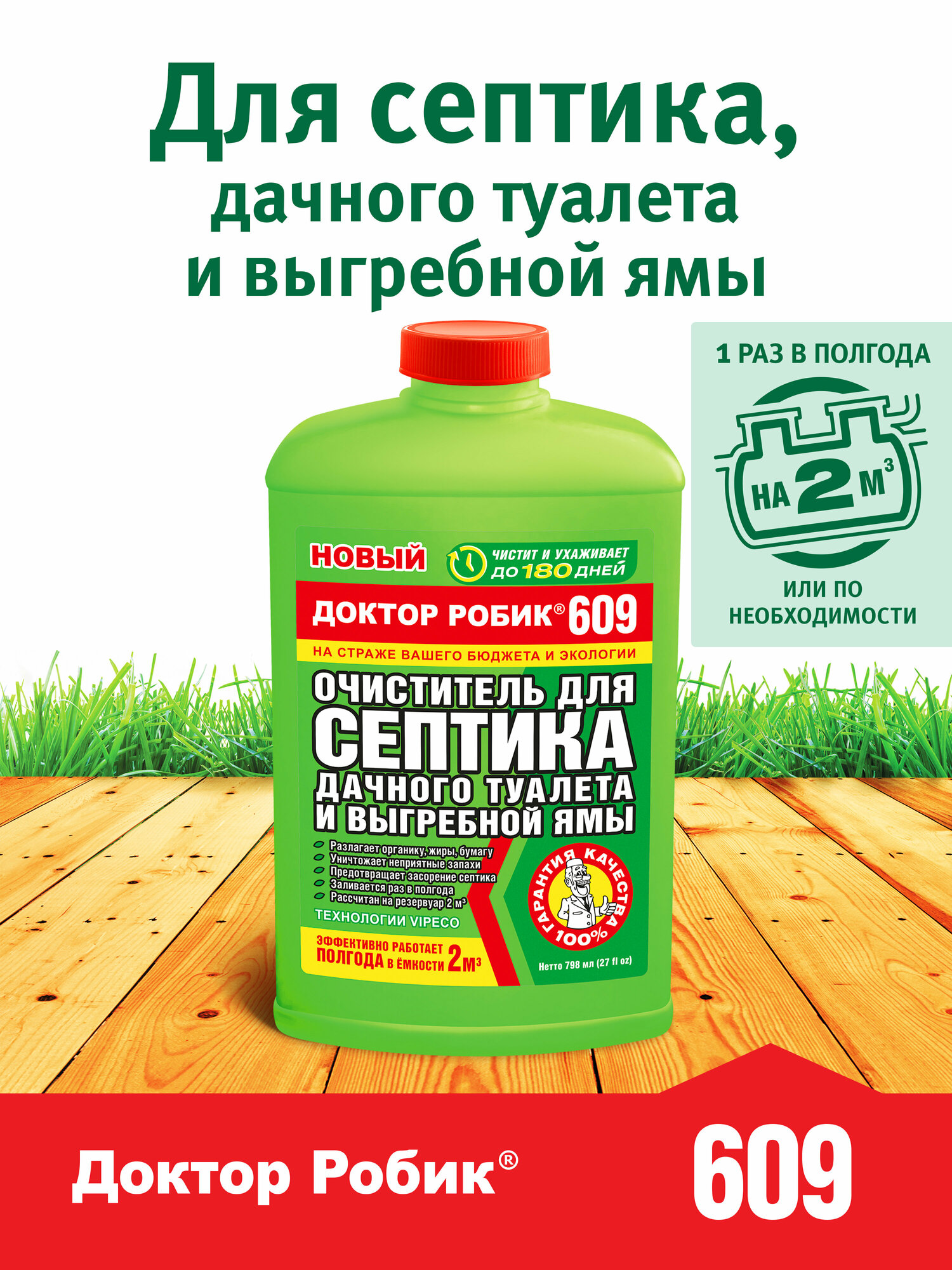 Очиститель для септика и дачного туалета "Доктор Робик 609", 798 мл
