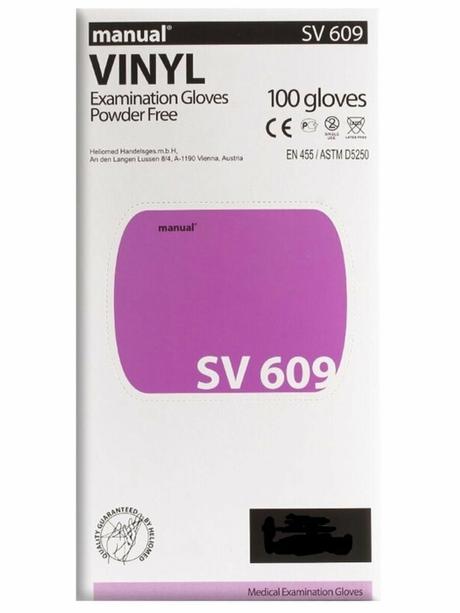 Перчатки виниловые смотровые Heliomed MANUAL SV609, SV609-02, цвет: прозрачный, размер M, 100 шт. (50 пар)
