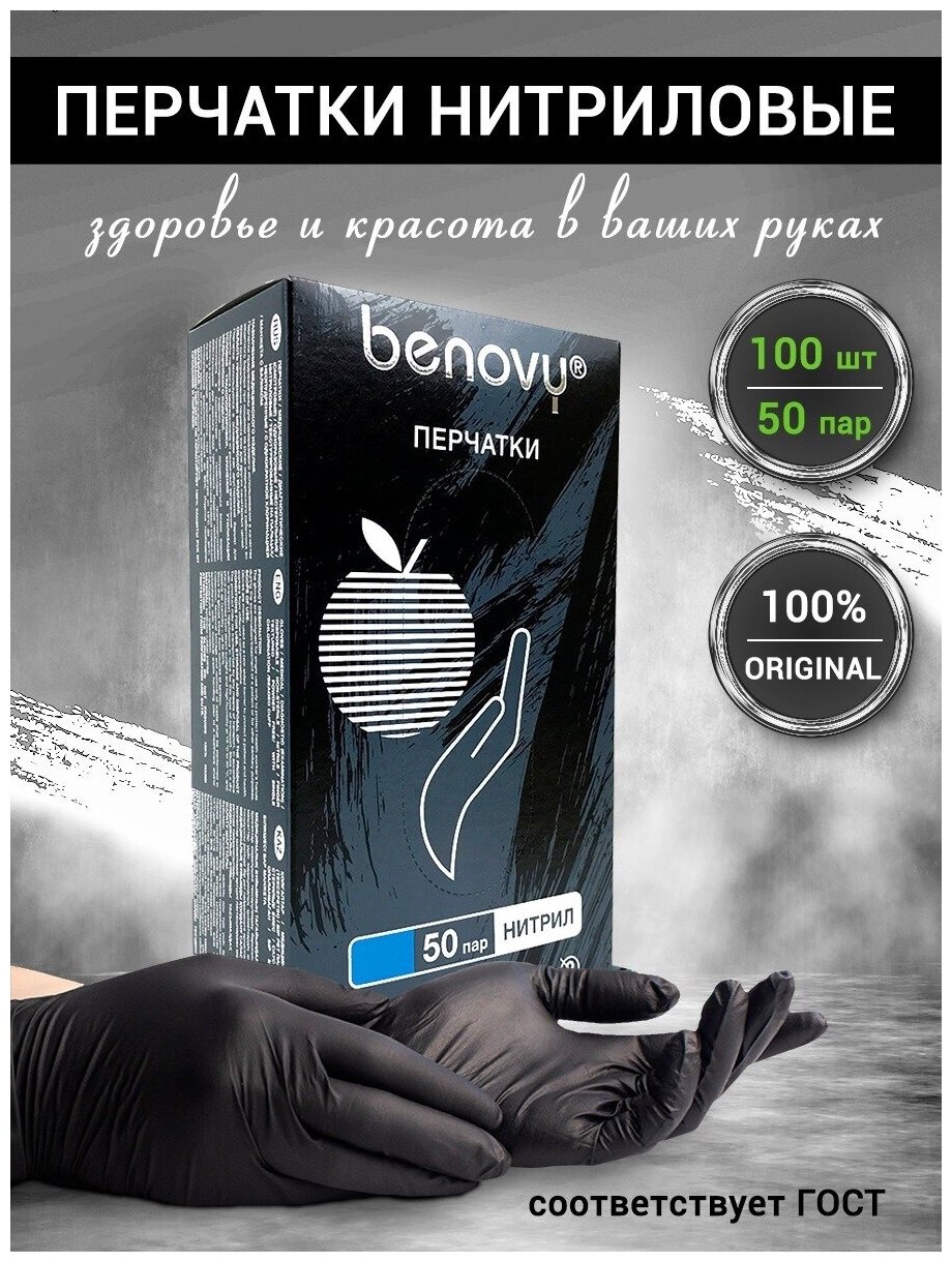 BENOVY Перчатки нитриловые 50 пар, черные, размер M, одноразовые, медицинские