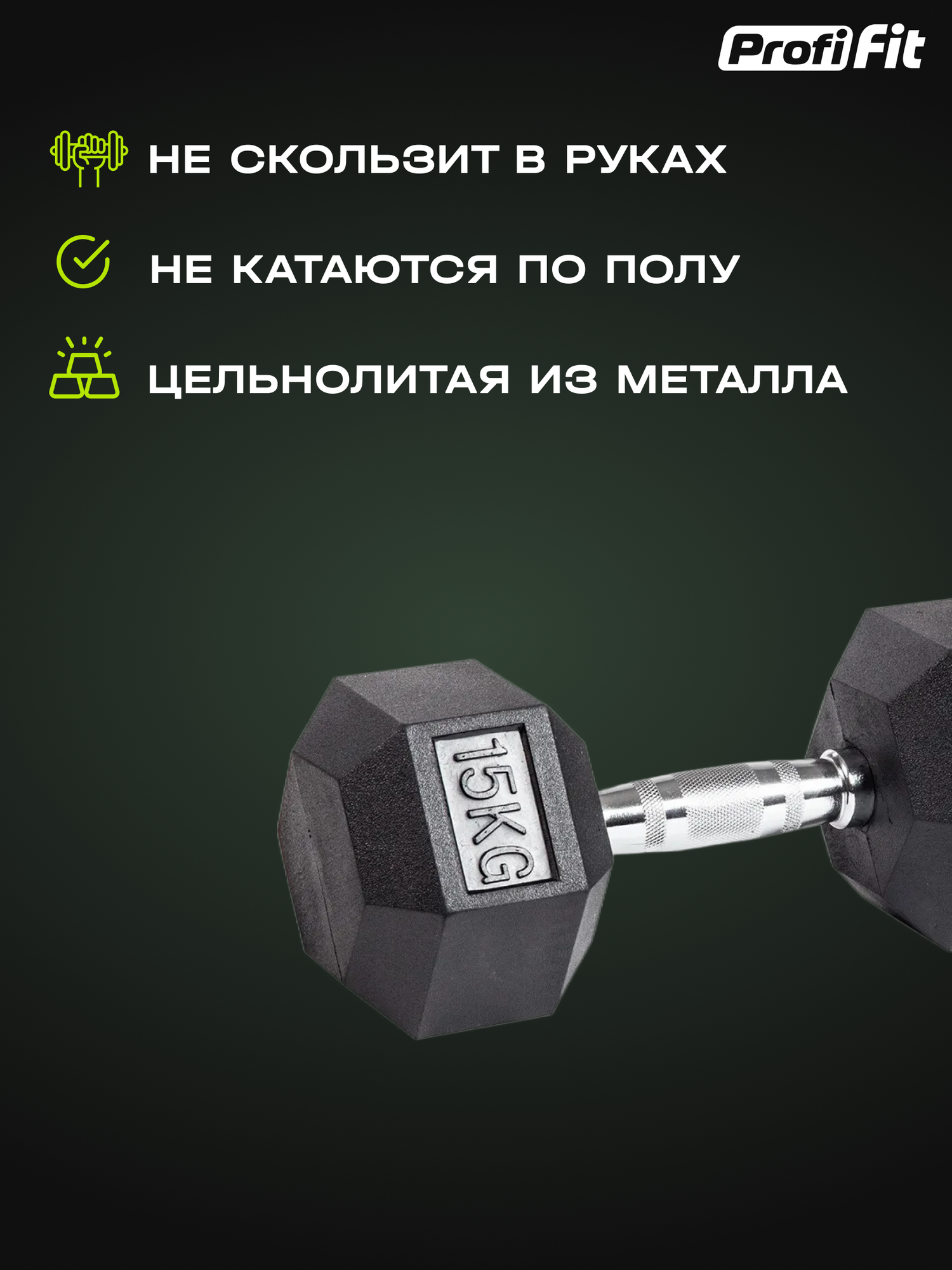Гантель гексагональная обрезиненная (15 кг), Profi-Fit