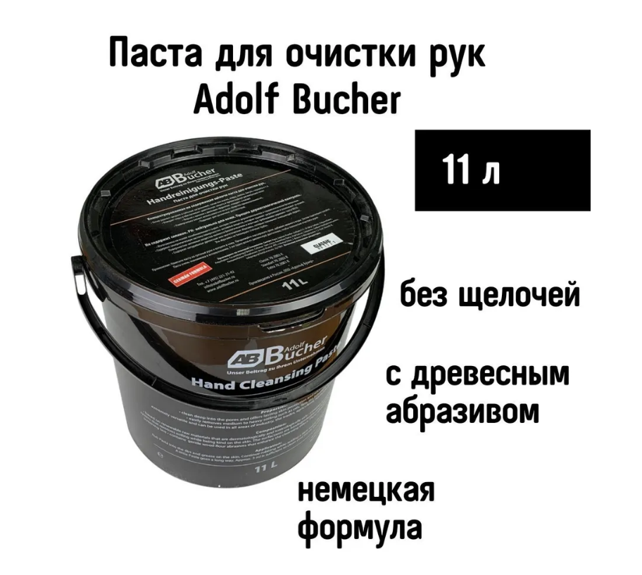 Паста для очистки рук Adolf Bucher Classic (без щелочей с древесным абразивом) 11 л / средство для очистки рук 11 л интересное: