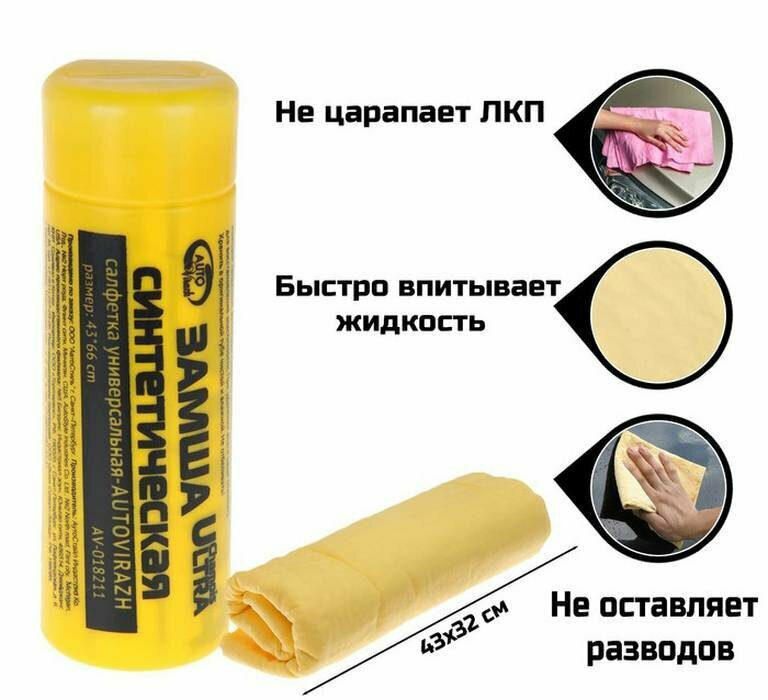 Замша протирочная в тубе Autovirazh AV-018211. 66 х 43 см 1293295