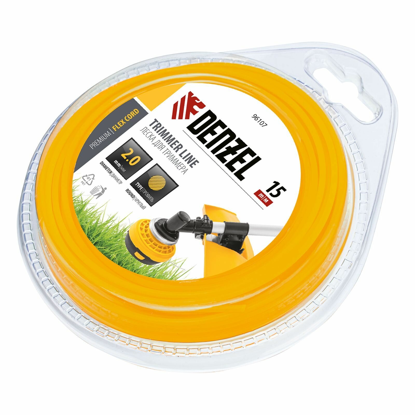Леска для триммера Denzel круглая 2 мм х 15 м блистер FLEX CORD 96107