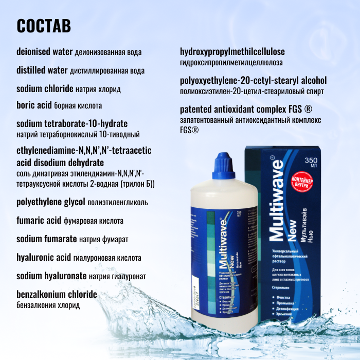 Раствор Multiwave New для ухода за контактными линзами с контейнером, 350 мл