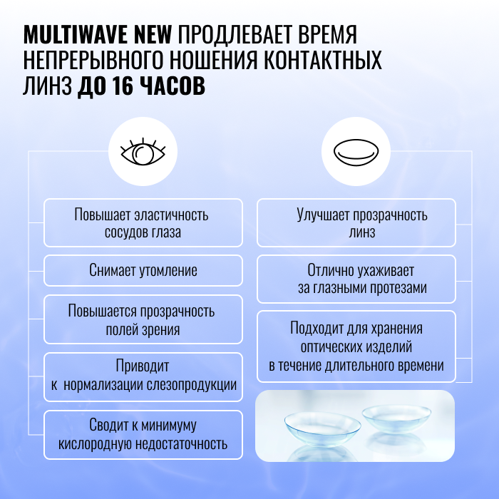 Универсальный раствор для контактных линз Multiwave New с гиалуроновой кислотой, с контейнером, 250 мл