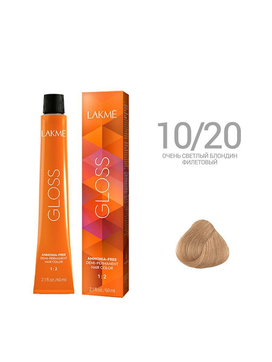 LAKMÉ, GLOSS, Крем-краска для волос тонирующая №10/20, Очень светлый блондин фиолетовый, 60 мл