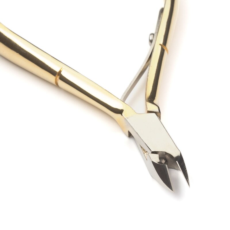 Щипцы для маникюра POLE из твердой стали, одинарная пружина, винтовое соединение, золотое блестящее покрытие, размер лезвия - 7 мм (NHS-04)