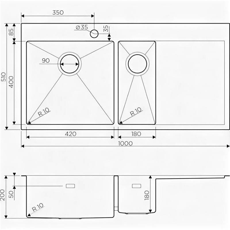Кухонная мойка OMOIKIRI Akisame 100-2-GM-R 4973104 (1000 x 510 мм), врезная, нержавеющая сталь, вороненая сталь