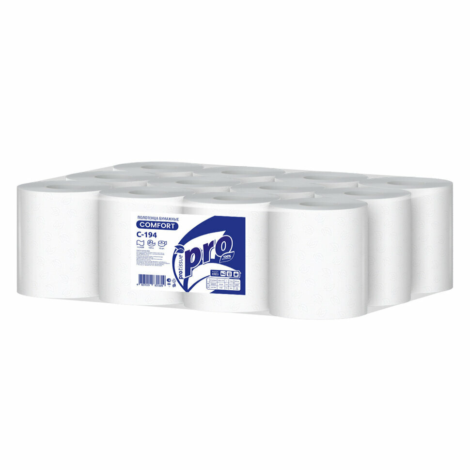Полотенца бумажные PROtissue Comfort C194 однослойные, с центральной вытяжкой, 1 упаковка - 12 рулонов по 120 метров
