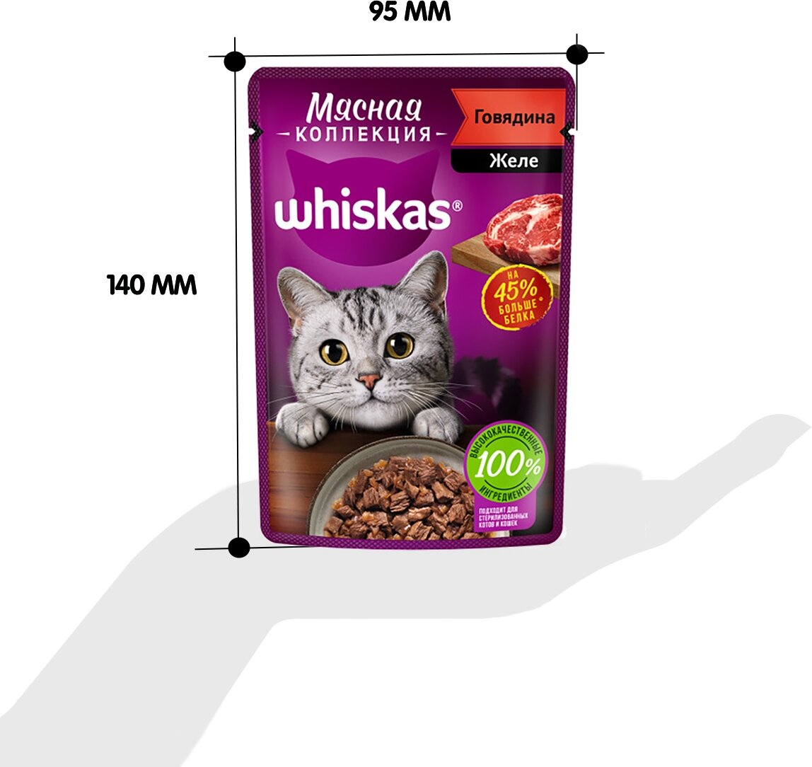 Whiskas влажный корм для кошек, мясная коллекция, говядина в желе (28шт в уп) 75 гр