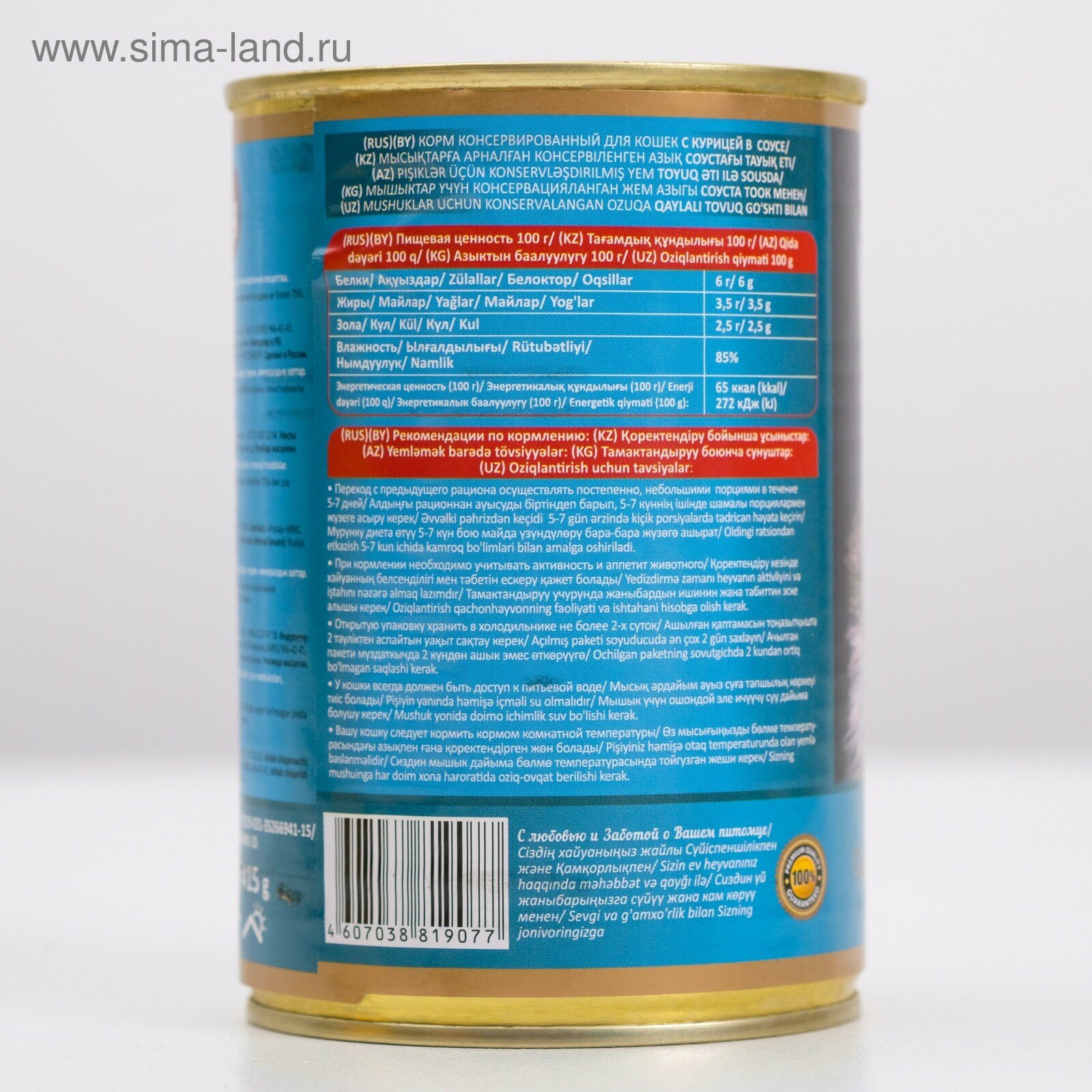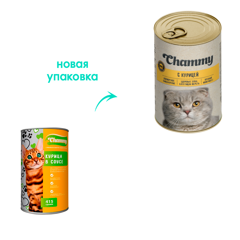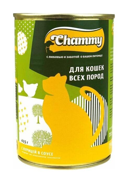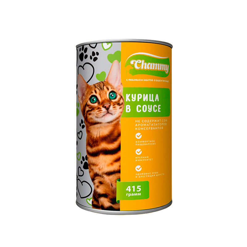 Влажный корм Chammy для кошек, курица в соусе, ж/б, 415 г 4445706 интересное: