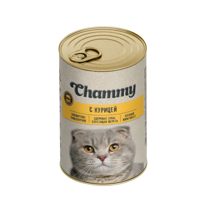 Влажный корм Chammy для кошек, курица в соусе, ж/б, 415 г