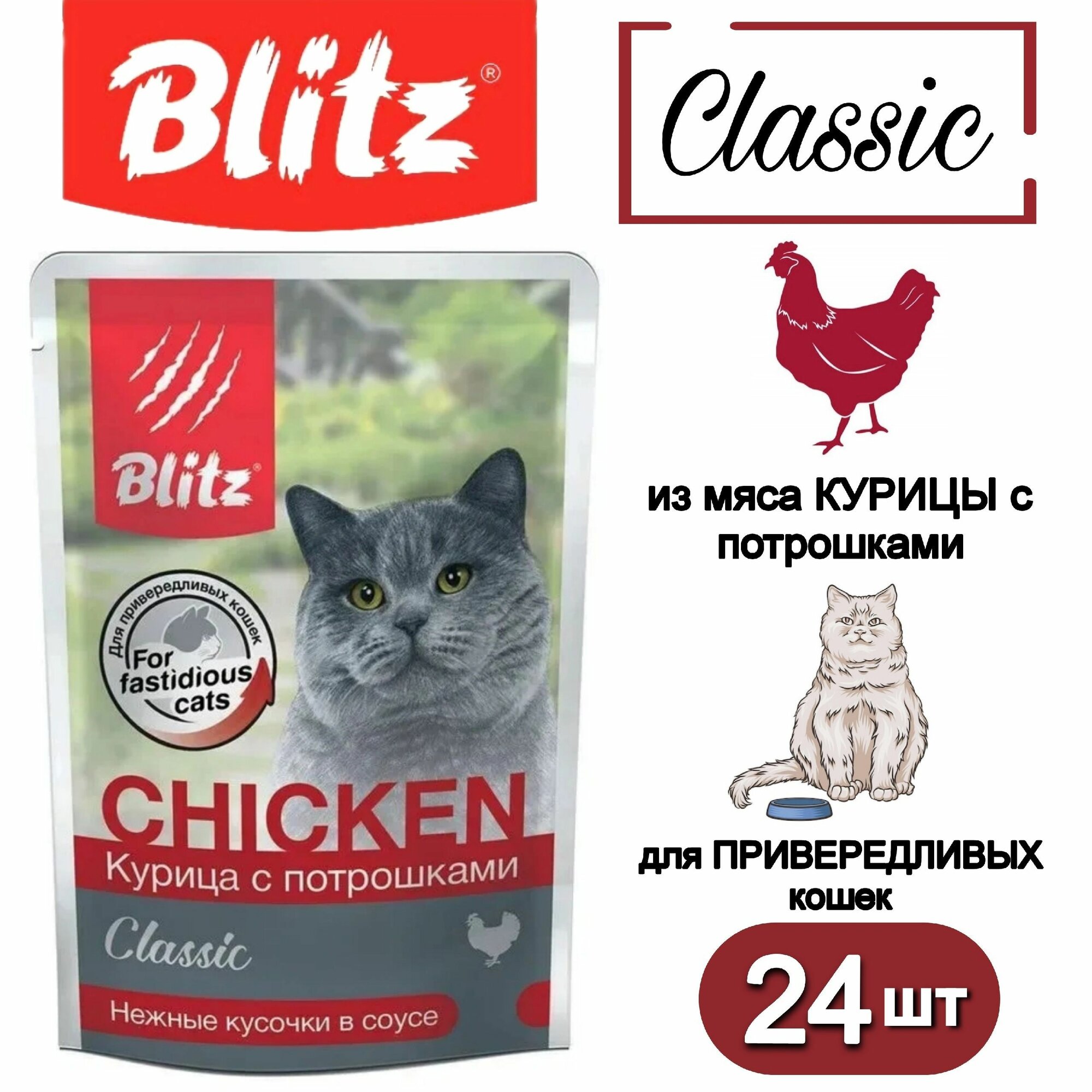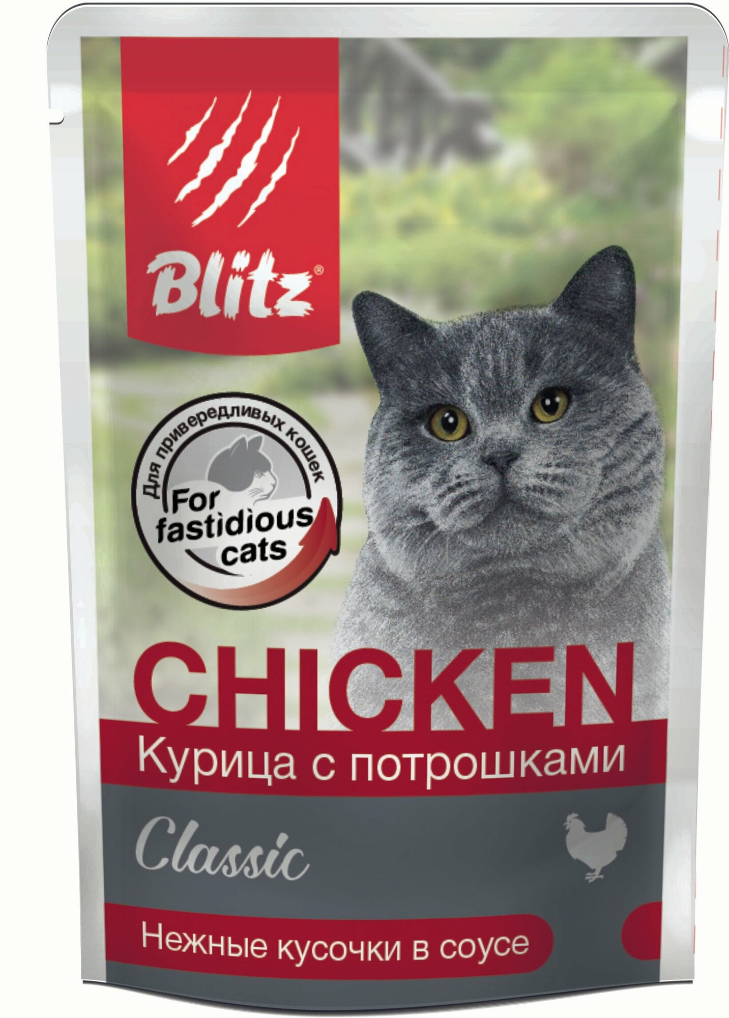 Blitz Classic Cat Adult влажный корм для взрослых кошек, с курицей и потрошками в соусе, в паучах - 85 г x 24 шт