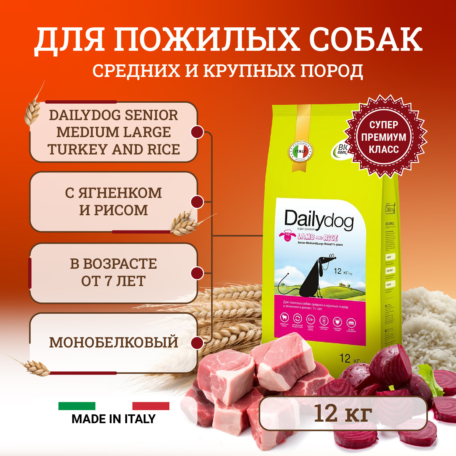 Купить DailyDog Для пожилых собак средних и крупных пород с ягненком и рисом 257ДД, 12 кг, 42392
