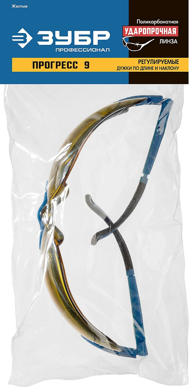 ЗУБР Прогресс 9 Желтые, очки защитные открытого типа, регулируемые дужки 110311_z01