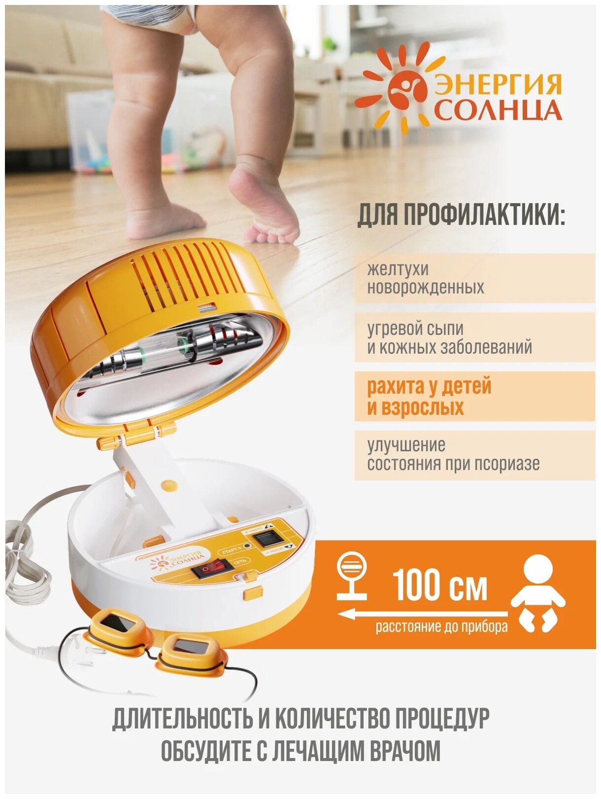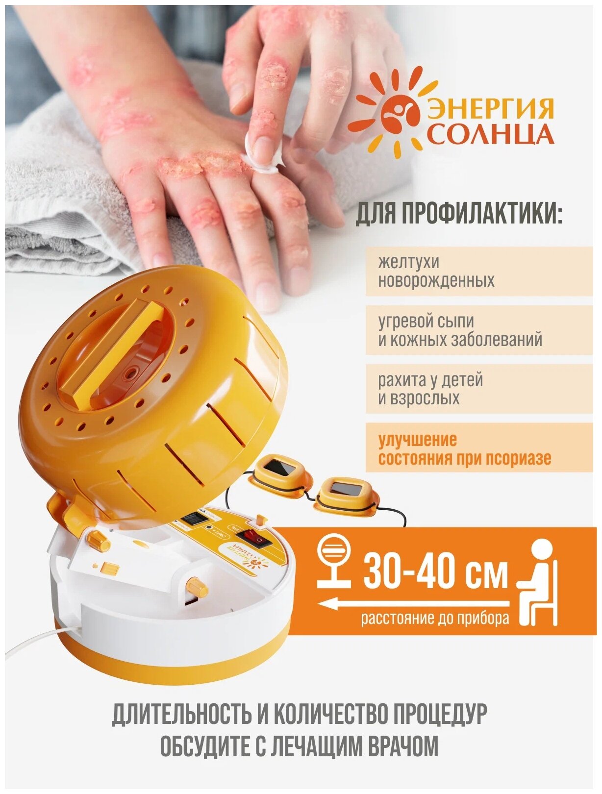 Энергия Солнца Мультиволновой бытовой облучатель для ухода за кожей лица, плеч, шеи, восполнения нехватки витамина D