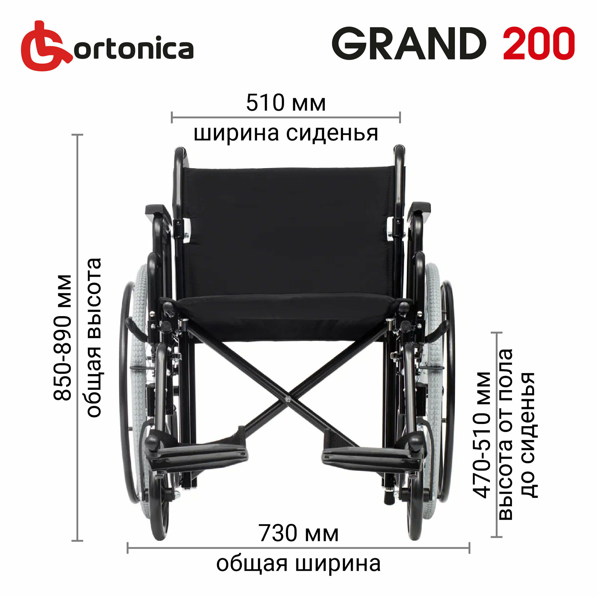 Инвалидная коляска Ortonica Grand 200 грузоподъемность до 150 кг (ширина 56 см)