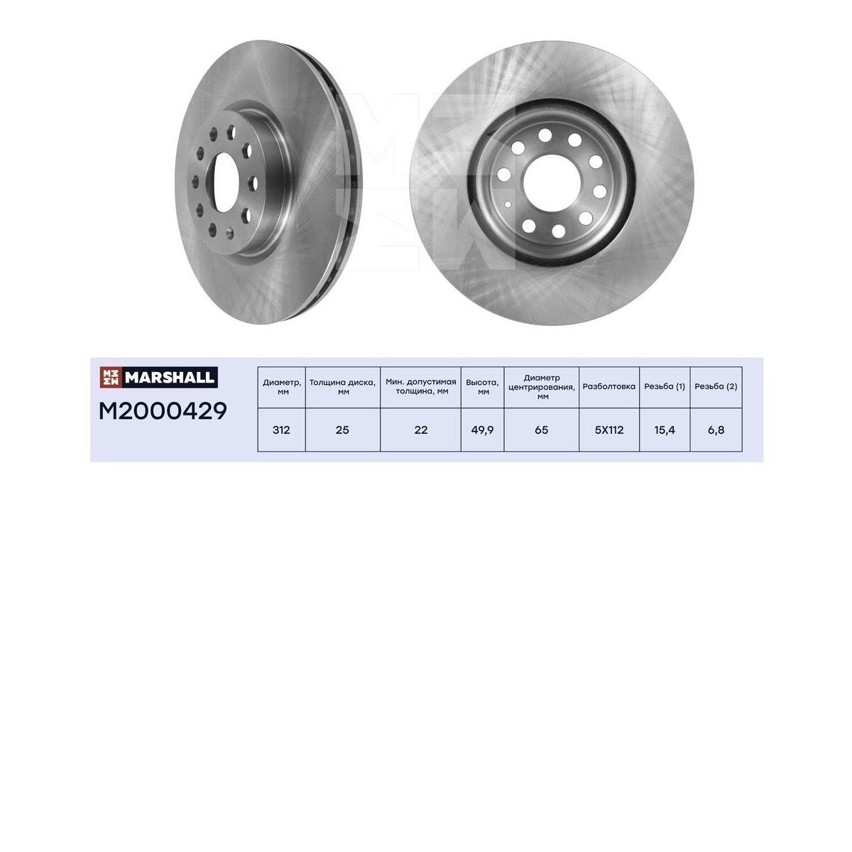 Тормозной диск передний Marshall M2000429 312x25 для Skoda Octavia, Audi A3, Volkswagen Passat, Volkswagen Golf