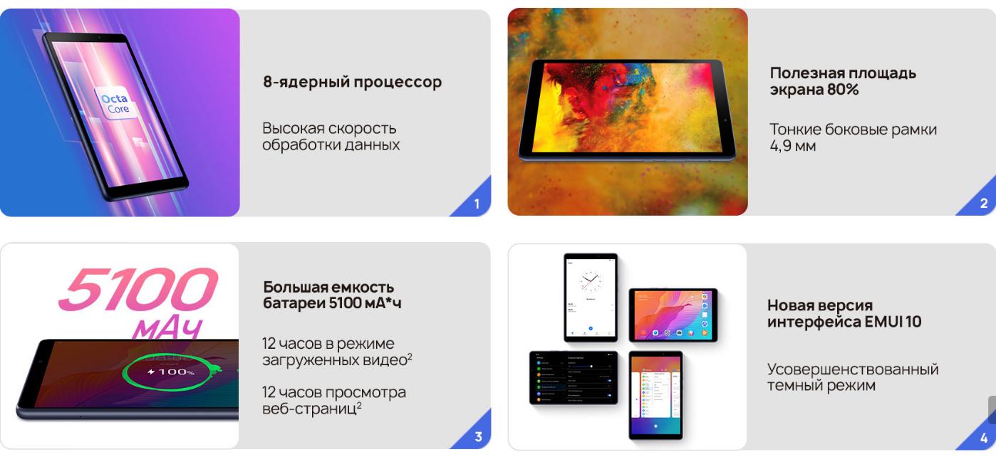 Планшет HUAWEI MatePad T 8.0 (2020), 3 ГБ/32 ГБ, Wi-Fi, насыщенный синий