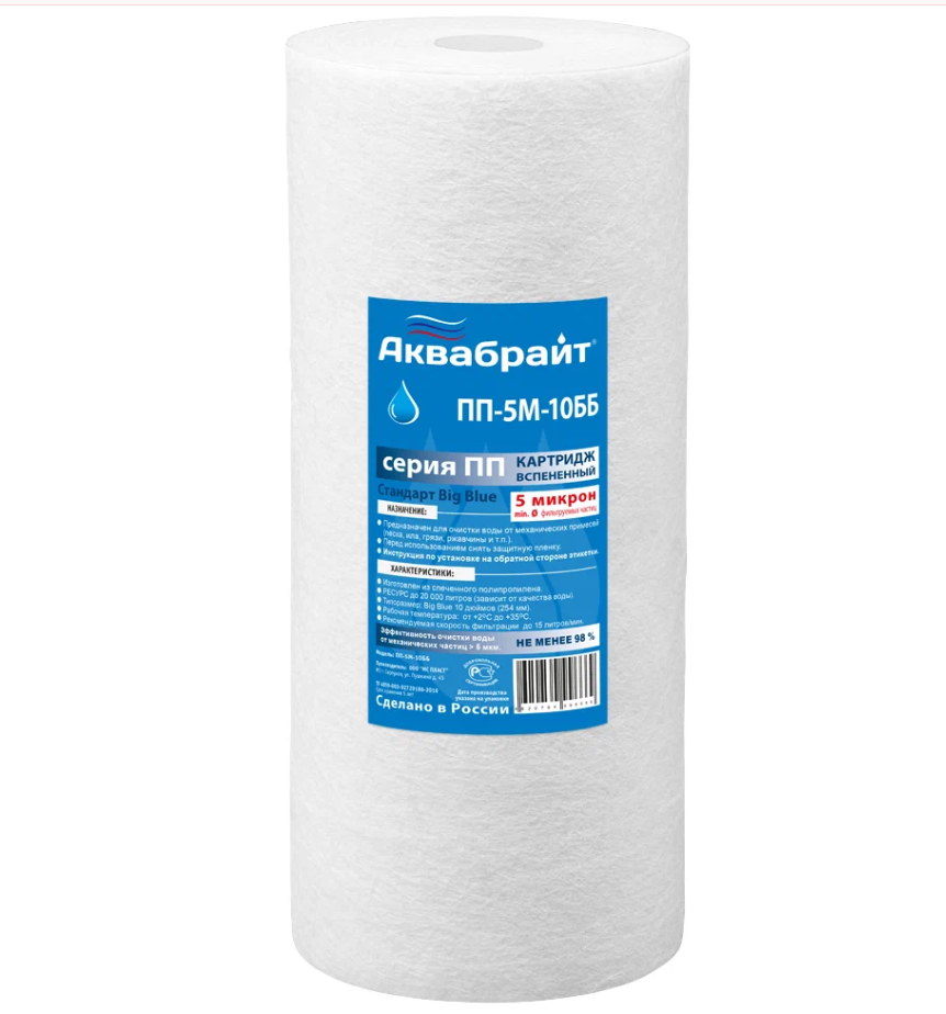 Картридж Аквабрайт ПП-5М-10ББ Big Blue, полипропилен, 5 микрон, 10"