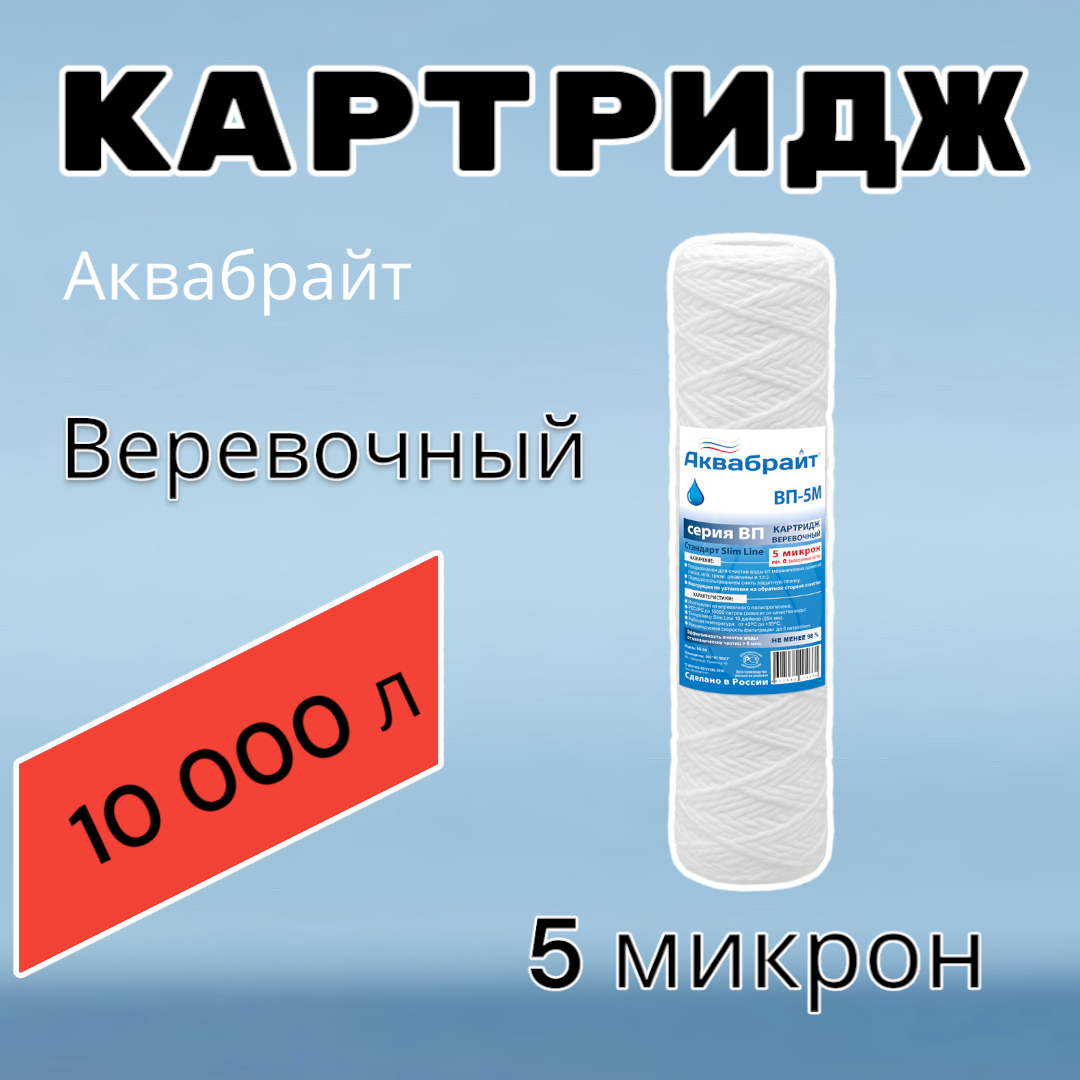 Картридж для фильтра сменный Аквабрайт ВП-10М, веревочный, для механической очистки воды (5 штук)