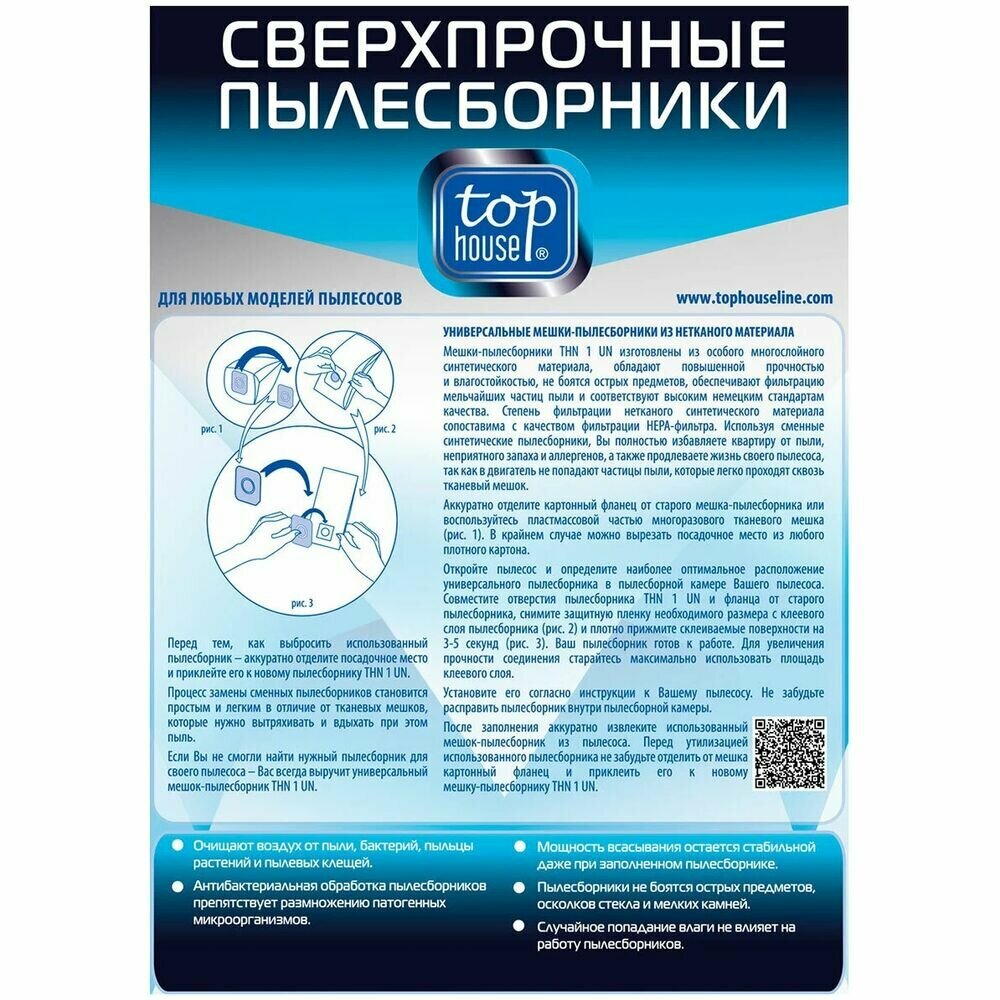 Сверхпрочные Мешки пылесборные Top House THN 1 UN 3шт Для любых пылесосов 4660003392524