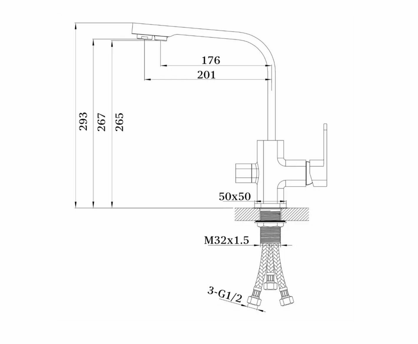 Смеситель для кухни GANZER GZ12025D с подключением к фильтру питьевой воды