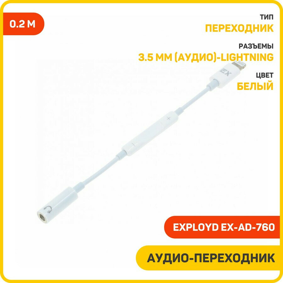 Аудио-переходник (адаптер) Exployd EX-AD-760 3.5 мм-Lightning, 0.2 м, белый интересное: