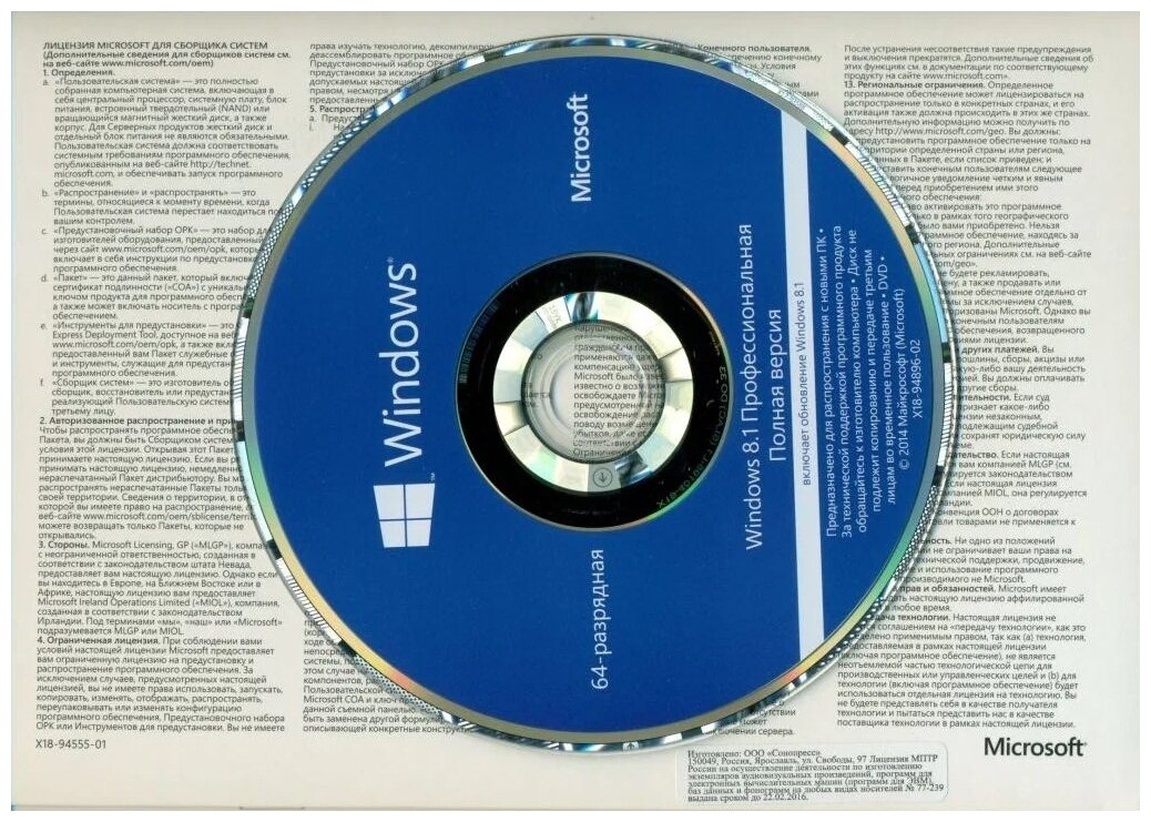 Microsoft Windows 8.1 Professional 32-bit/64-bit Russian Only DVD