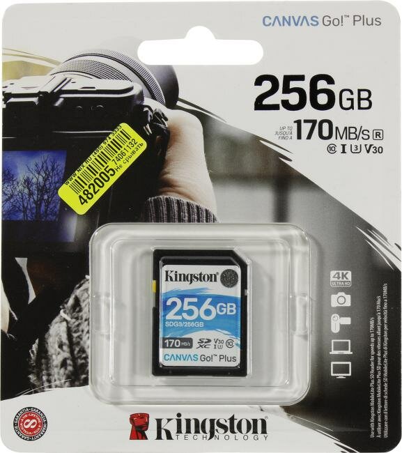 Карта памяти SDXC UHS-I U3 Kingston Canvas Go! Plus 256 ГБ, 170 МБ/с, Class 10, SDG3/256GB, 1 шт., без адаптера