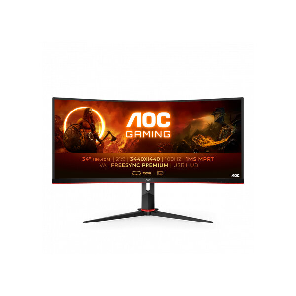 34" AOC Gaming CU34G2 Curved 1500R 3440x1440@100Hz VA LED 21:9 1ms 2*HDMI DP 4*USB3.0 80M:1 178/178 300cd HAS Tilt Swivel Black-Red