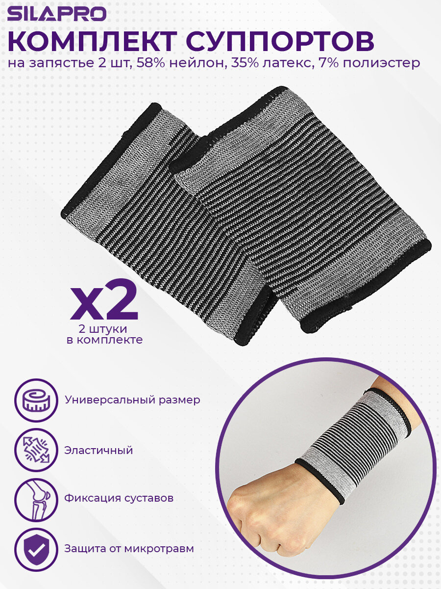 Комплект суппортов на запястье 2 шт, 58% нейлон, 35% латекс, 7% полиэстер, SILAPRO