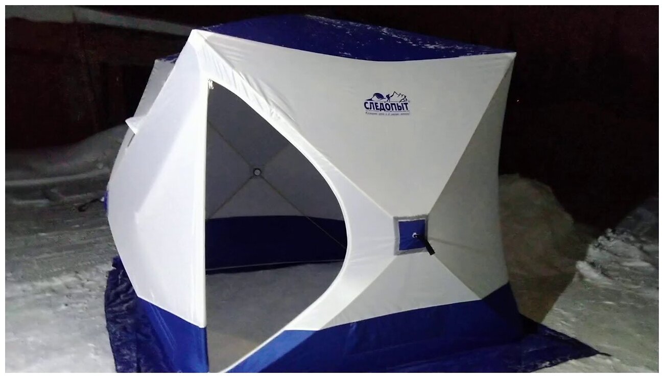 Палатка зимняя куб следопыт 1,8 х1,8 м, Oxford 210D PU 1000, 3-местная, цв. бело-синий PF-TW-12