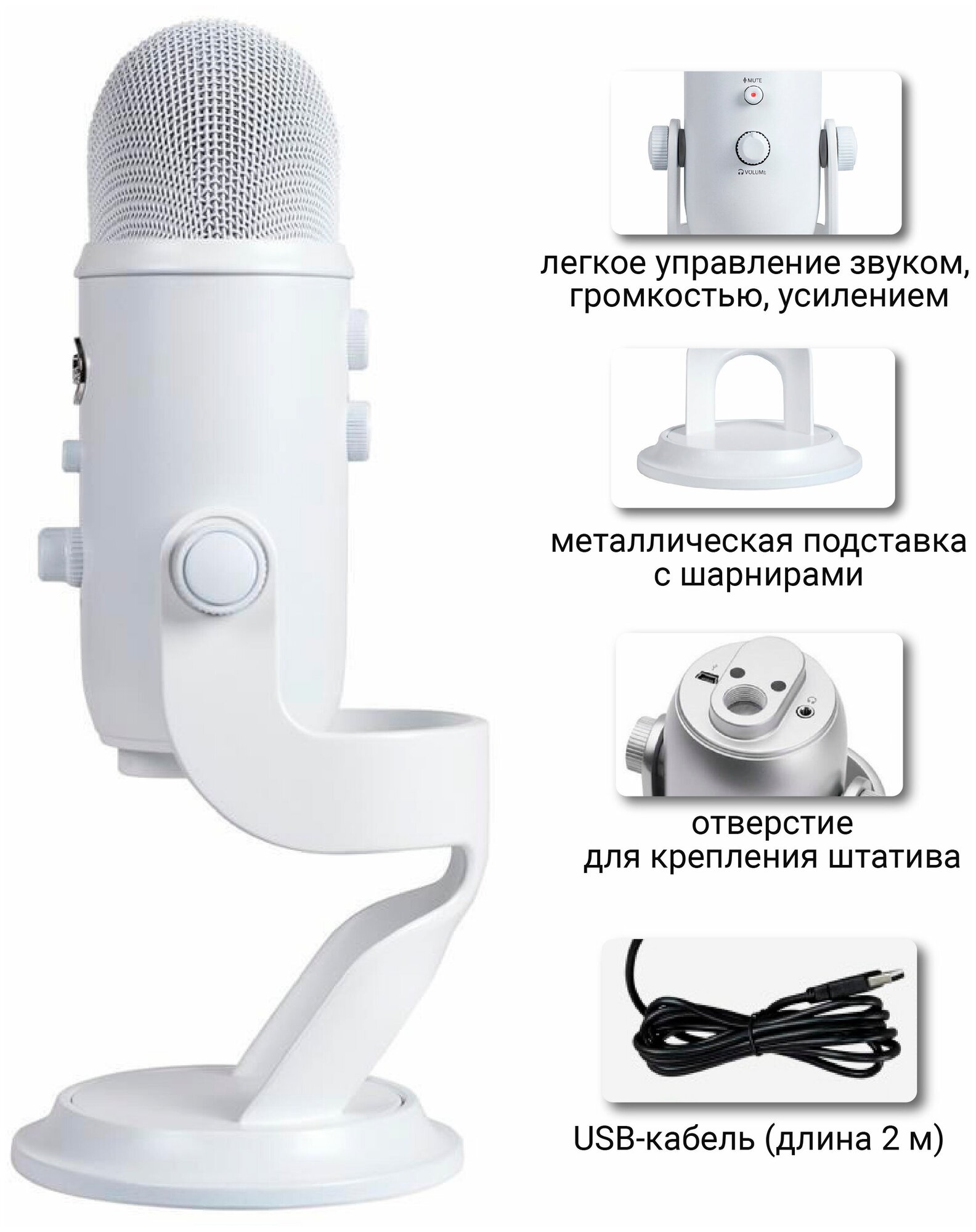 СохранитьМикрофон проводной Blue Yeti, разъем: USB, белый интересное: